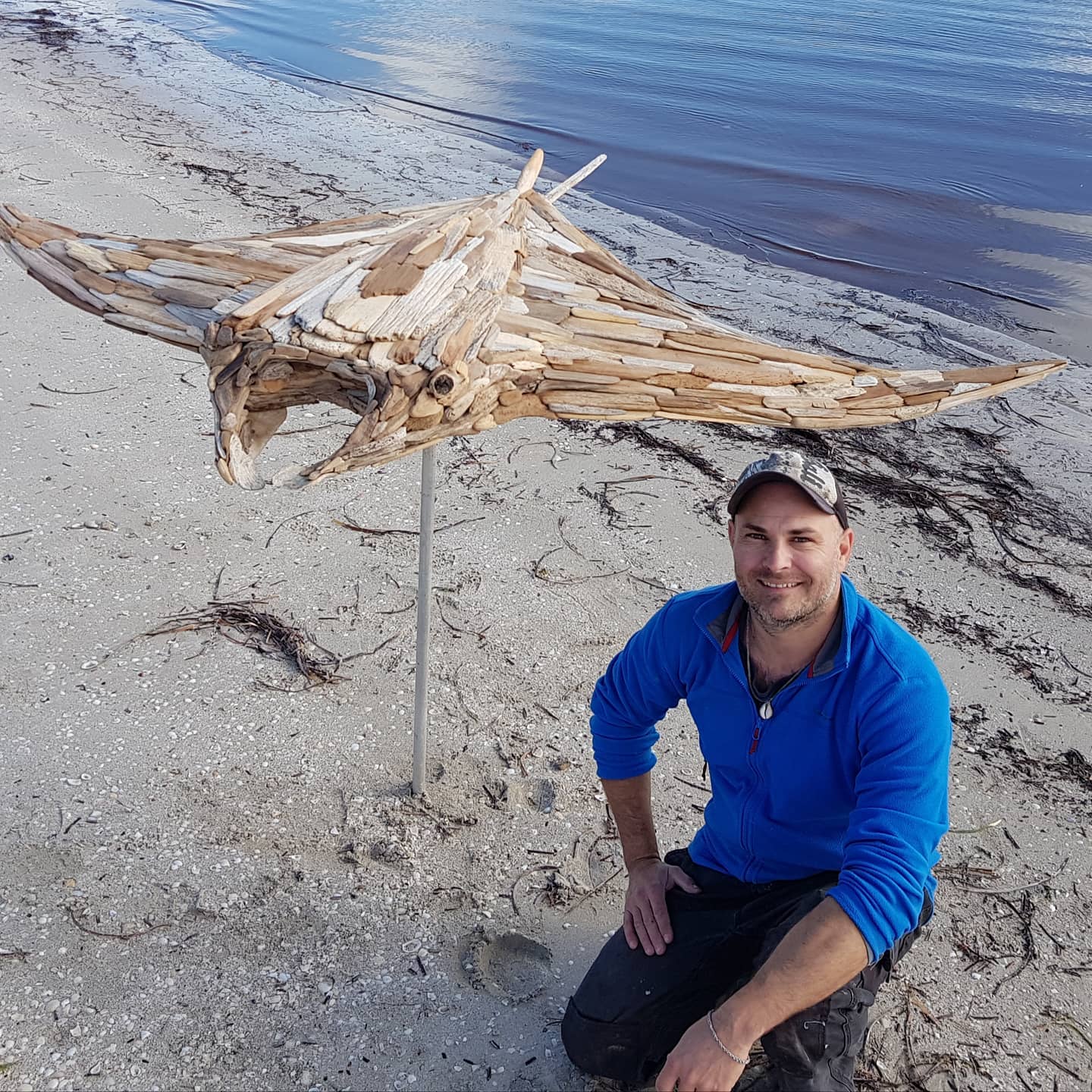 Alans earlier career consisted of working in an aerospace company as a toolmaker and machinist. However, the ocean beckoned, and every weekend was spent in the Kombi van by the beach. In 2003 Alan moved to Yorke Peninsula to find his passion and start a family. The following decade Alan found work in stone masonry, carpentry, statue making and off grid living. Along with the building of his own home it seemed all the skills formed in earlier life came to fruition in a new passion for driftwood sculpture.