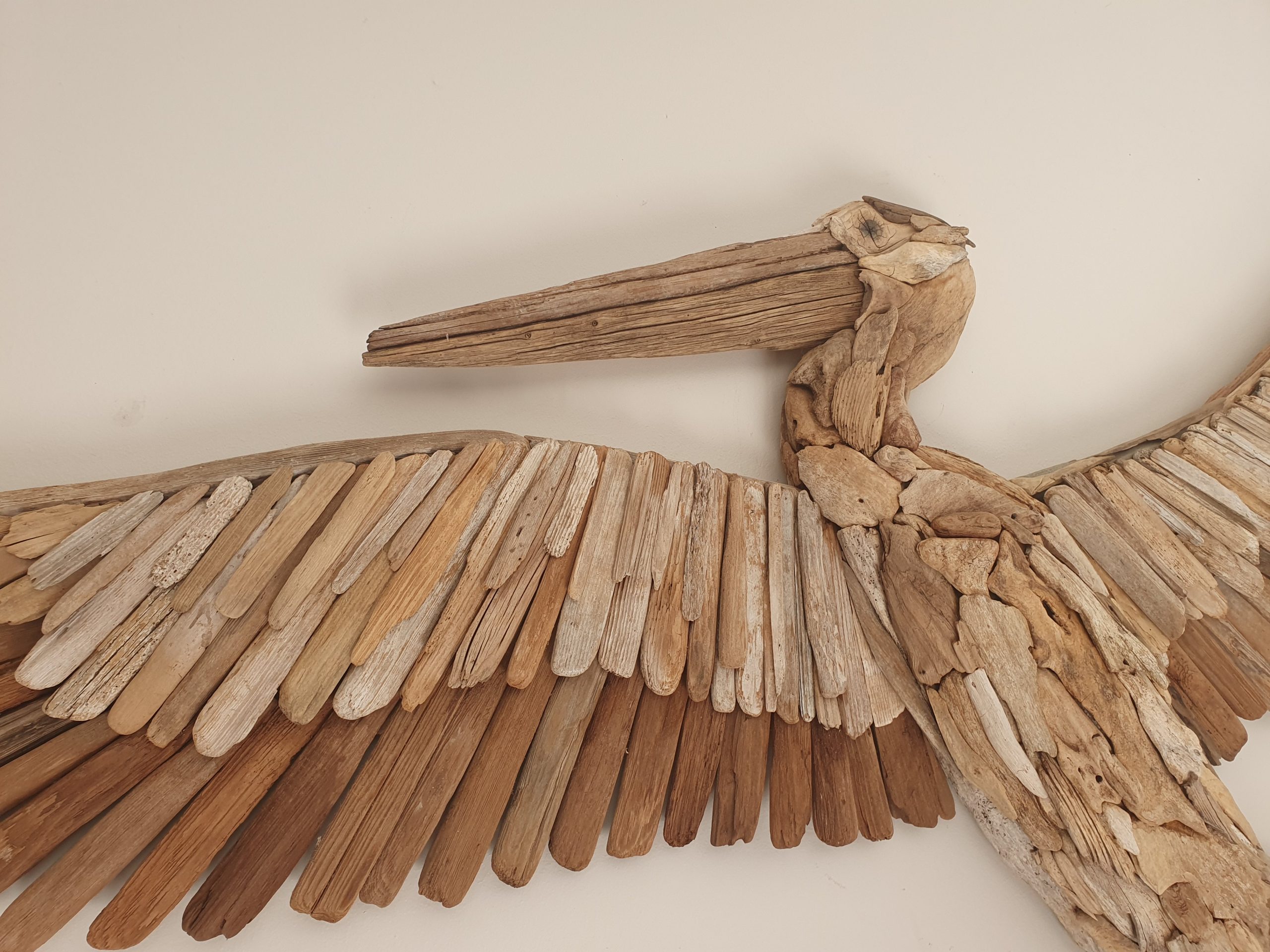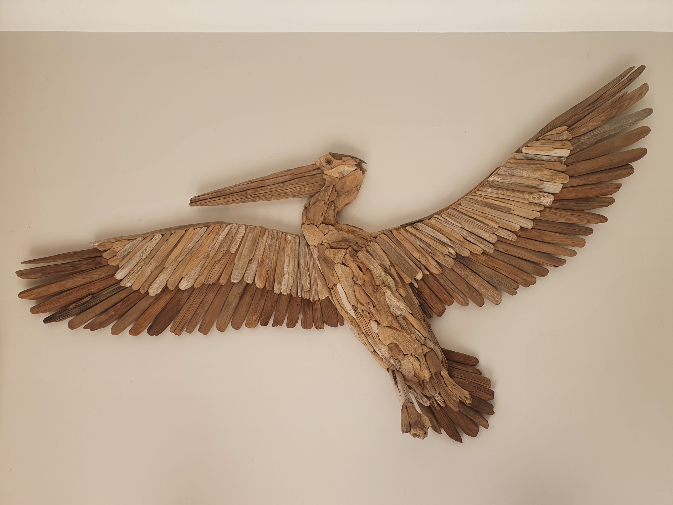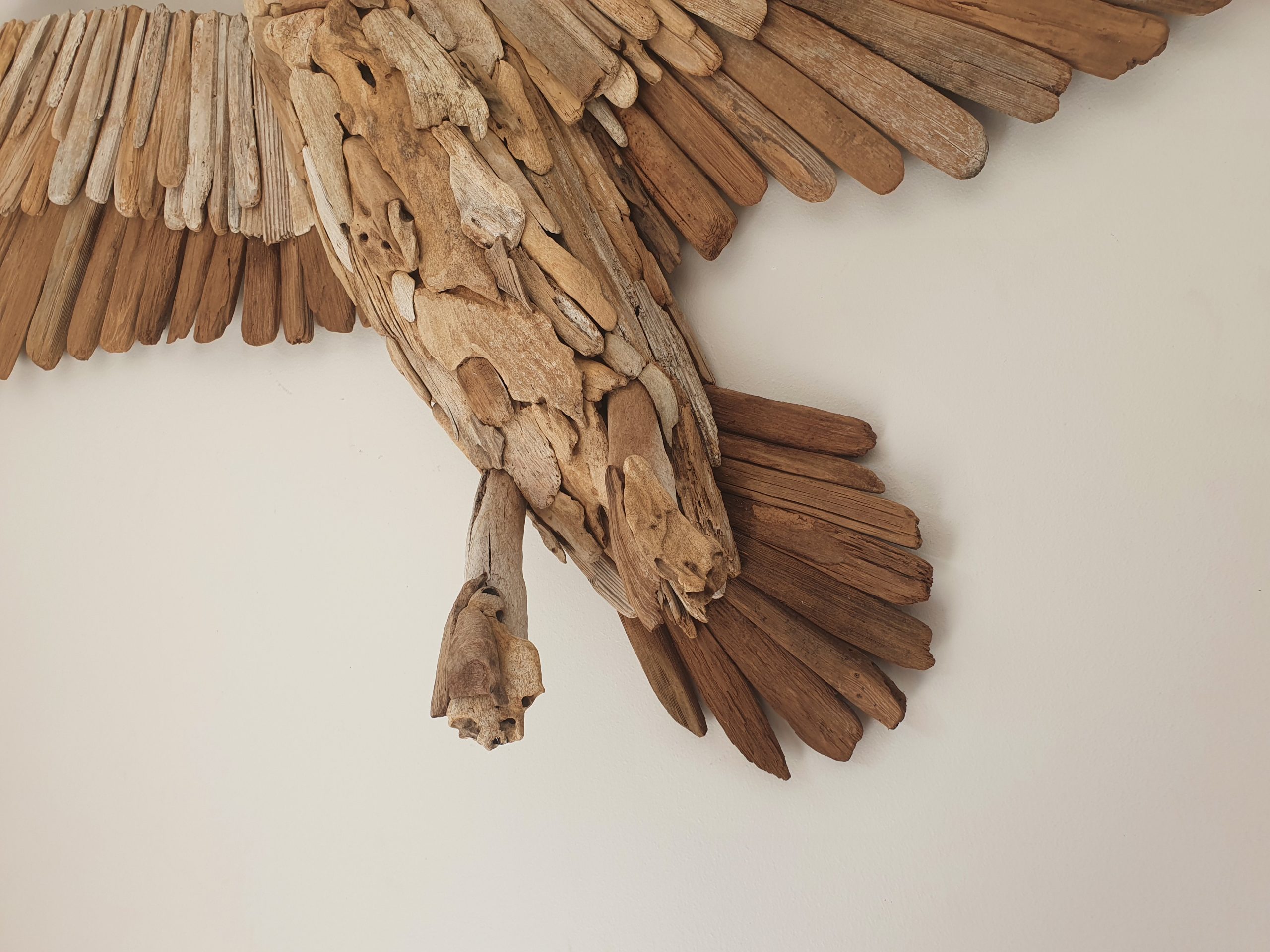 Made from natural driftwood collected from the Northern Territory and South Australia. These sculptures measure approximately 110 cm across the wings.